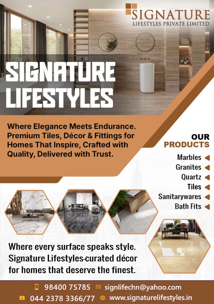 Signature Lifestyles Pvt. Ltd offers a comprehensive range of high-quality ceramic tiles, vitrified tiles, sanitaryware, bath fittings, marbles, and granitesโperfectly suited for bathroom and kitchen renovations.